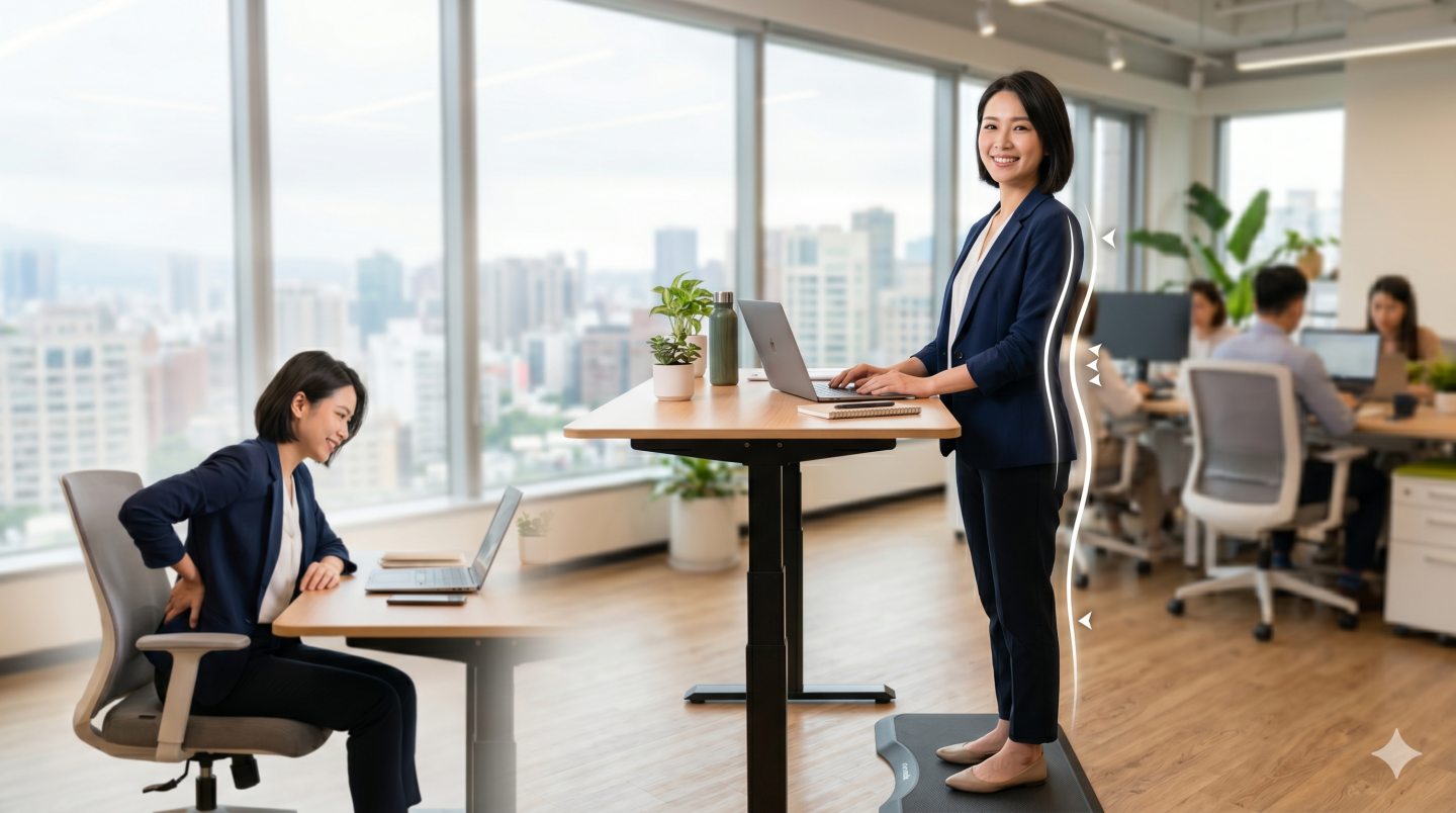 別讓你的辦公桌變成脊椎的「刑具」。請依照以下步驟進行微調:視線水平化: 使用螢幕支架,確保視線落在螢幕的上三分之一處,避免脖子向下彎曲。